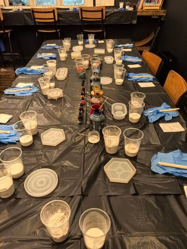 Kelly Designs workshop includes a brief presentation on Jesmonite, the application basics, and an understanding of the materials used, creating your own piece using the materials supplied.